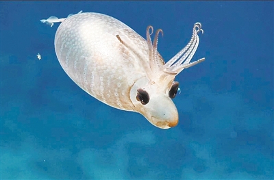 近日,美国海洋研究团队在夏威夷附近水域发现了一只俗称“小猪鱿鱼”的罕见生物。它看起来半透明,身形小且圆胖,脸部有像猪鼻子一样的虹吸管,触须长在头上,还有一双黑亮的大眼,看起来像猪又像鹿。