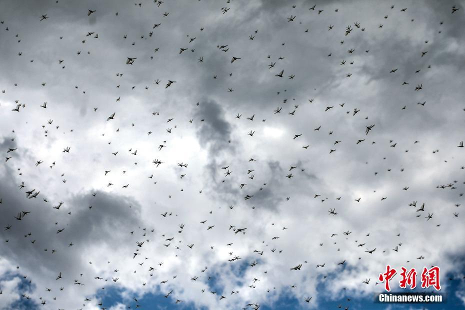 当地时间7月28日,也门萨那天空出现大片蝗虫,蝗虫漫天飞舞触目惊心。