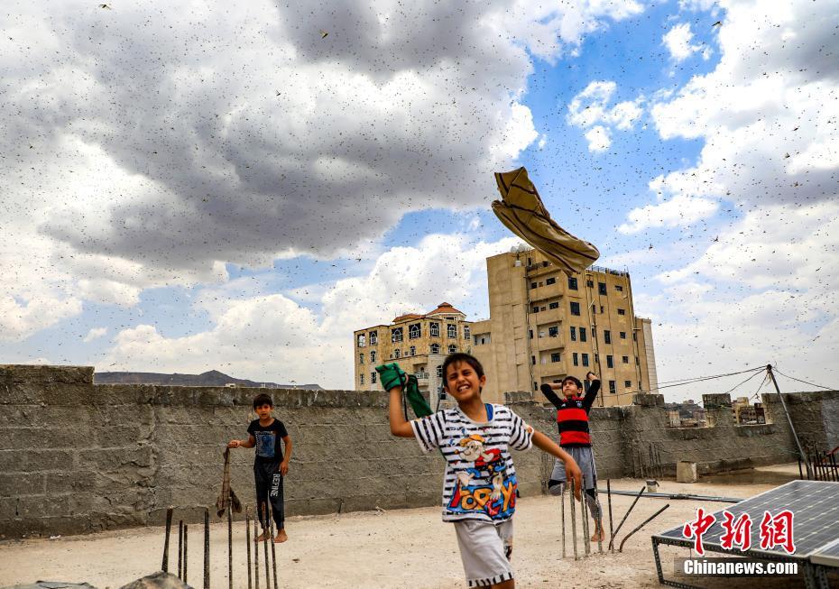 当地时间7月28日,也门萨那天空出现大片蝗虫,蝗虫漫天飞舞触目惊心。
