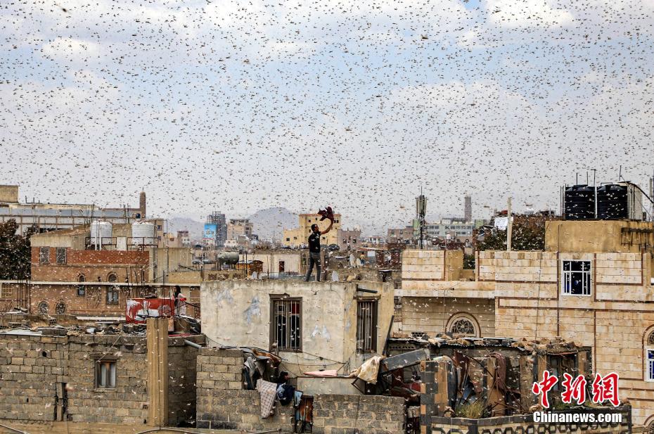 当地时间7月28日,也门萨那天空出现大片蝗虫,蝗虫漫天飞舞触目惊心。