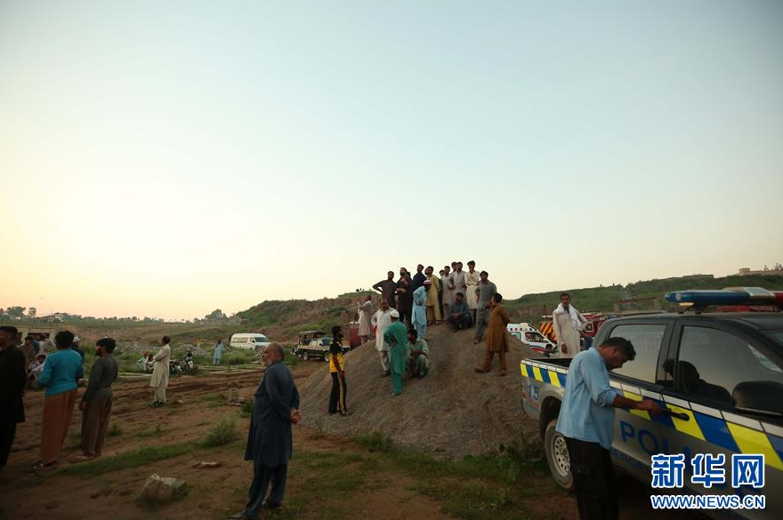 7月30日,在巴基斯坦拉瓦尔品第市郊区,人们聚集在坠机现场。 新华社发(艾哈迈德·卡迈勒摄)