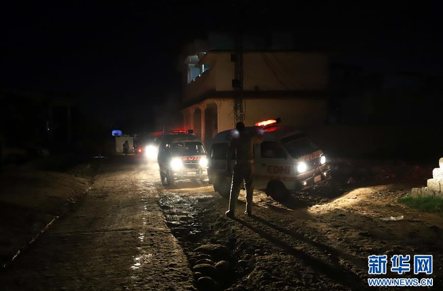 7月30日,在巴基斯坦拉瓦尔品第市郊区,救护车抵达坠机现场。 新华社发(艾哈迈德·卡迈勒摄)