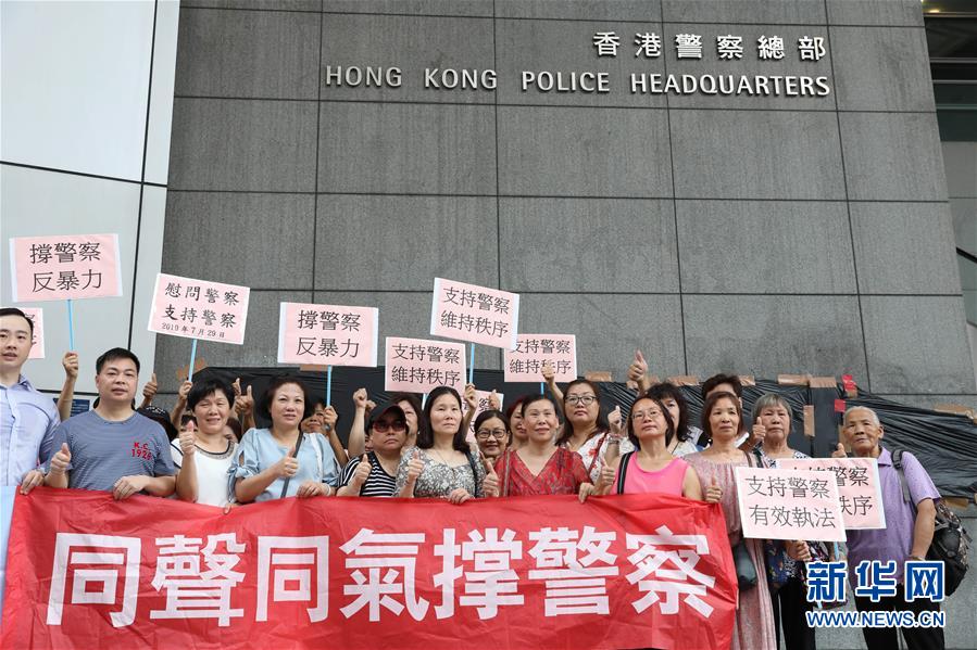 7月29日,香港市民在香港警察总部慰问警队。