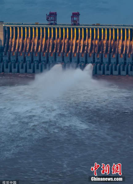 7月30日,湖北宜昌,三峡水库开启深孔泄洪的场景。据三峡集团7月29日消息,为防备长江上游近日开始的持续降雨可能形成的洪水,三峡水库提前腾出防洪库容,充分做好防范应对工作。图片来源:视觉中国