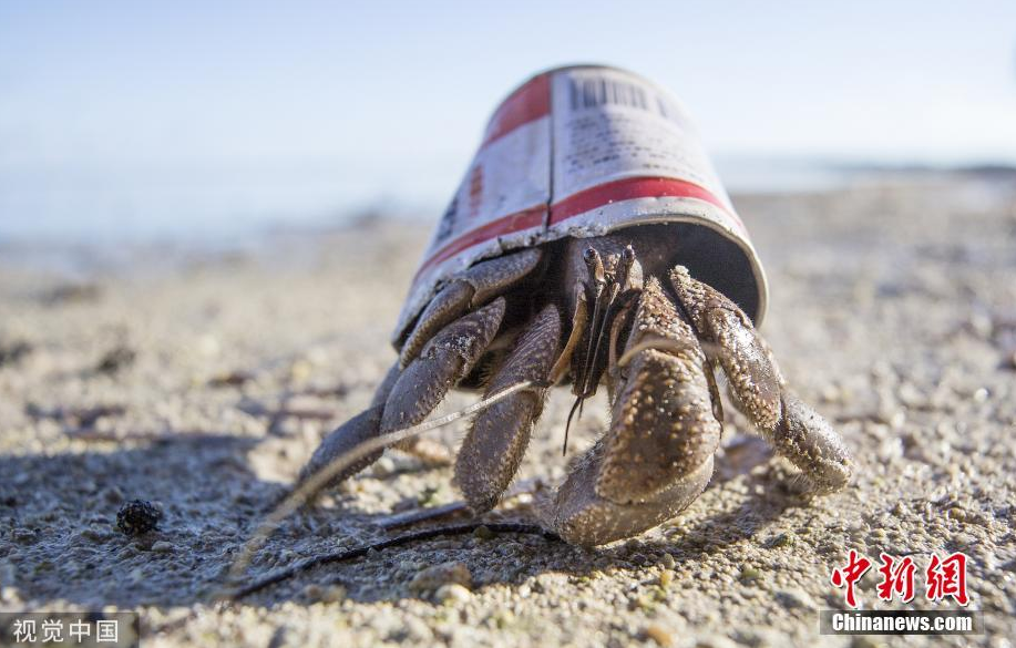 受环境影响 太平洋偏远岛屿寄居蟹以罐为“家”