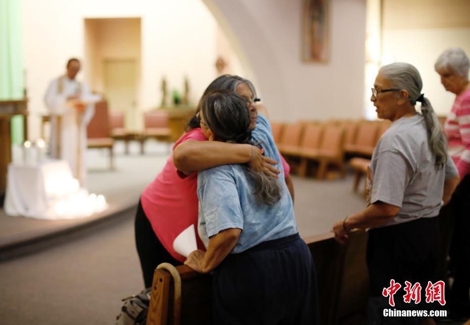 当地时间7月30日,美国民众聚集在旧金山湾区圣何塞的一座教堂,为吉尔罗伊大蒜节枪击事件遇难者守夜。28日傍晚发生的吉尔罗伊大蒜节枪击事件造成包括枪手在内的4人死亡,12人受伤。中新社记者 刘关关 摄