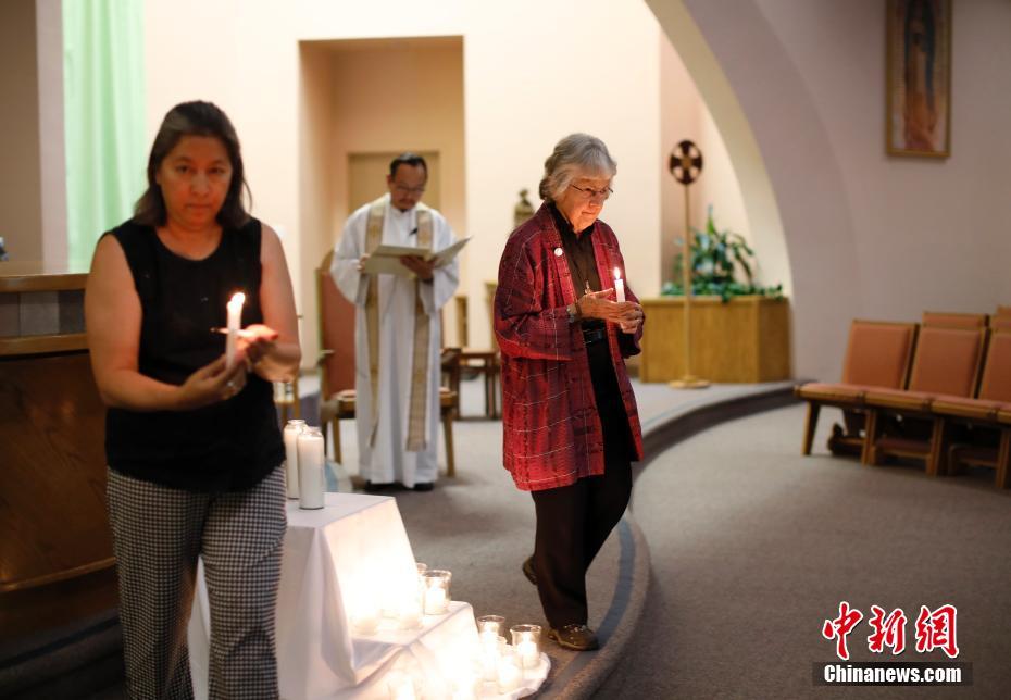当地时间7月30日,美国民众聚集在旧金山湾区圣何塞的一座教堂,为吉尔罗伊大蒜节枪击事件遇难者守夜。28日傍晚发生的吉尔罗伊大蒜节枪击事件造成包括枪手在内的4人死亡,12人受伤。中新社记者 刘关关 摄