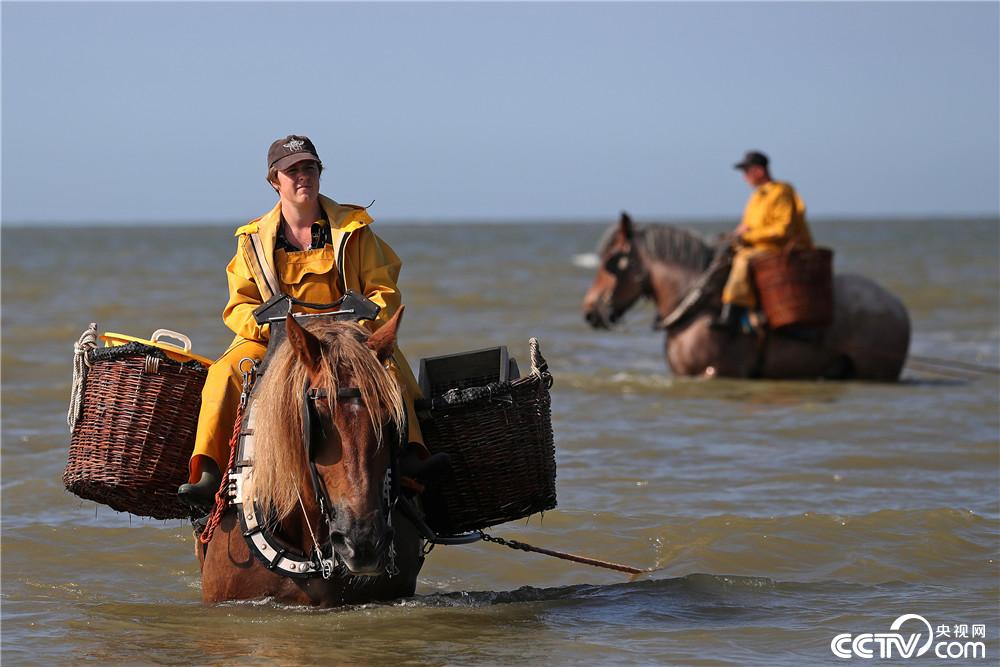比利时“骑士渔民”海边骑马捞鱼虾