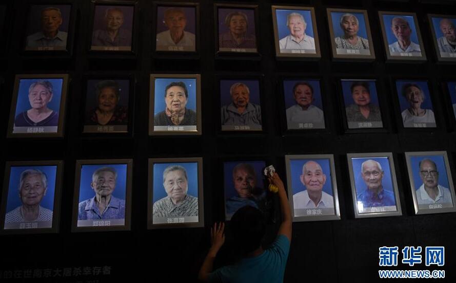 7月31日,在侵华日军南京大屠杀遇难同胞纪念馆,万秀英老人的小女儿倪红英在擦拭母亲遗像。新华社记者 季春鹏 摄