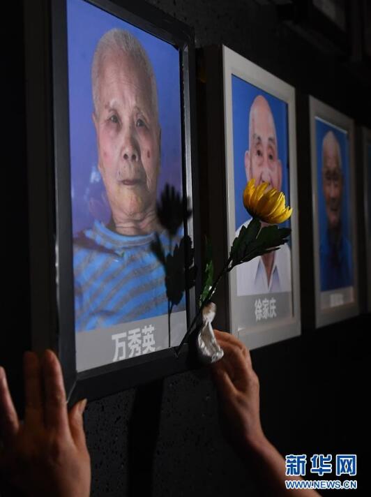 7月31日,在侵华日军南京大屠杀遇难同胞纪念馆,万秀英老人的小女儿倪红英在母亲遗像前悼念。新华社记者 季春鹏 摄