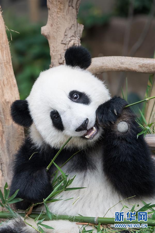 8月1日,在马来西亚吉隆坡附近的马来西亚国家动物园,大熊猫宝宝“谊谊”在吃竹子。 当日,马来西亚将在马出生的第二只雌性大熊猫宝宝取名为“谊谊”。“谊谊”是中国旅马大熊猫“兴兴”和“靓靓”所生的第二只大熊猫宝宝,于2018年1月14日出生。 新华社记者朱炜摄