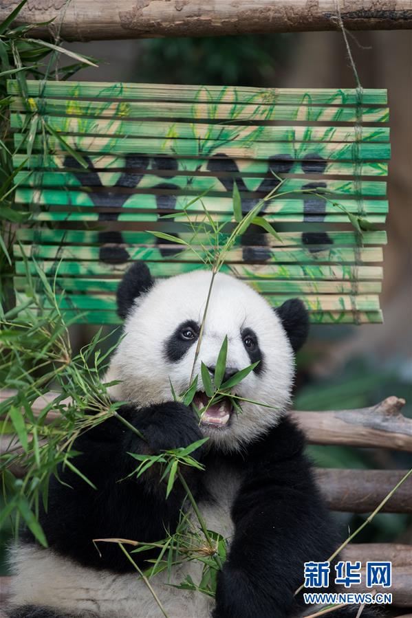 8月1日,在马来西亚吉隆坡附近的马来西亚国家动物园,大熊猫宝宝“谊谊”在写有自己名字的竹简旁吃竹子。 当日,马来西亚将在马出生的第二只雌性大熊猫宝宝取名为“谊谊”。“谊谊”是中国旅马大熊猫“兴兴”和“靓靓”所生的第二只大熊猫宝宝,于2018年1月14日出生。 新华社记者朱炜摄