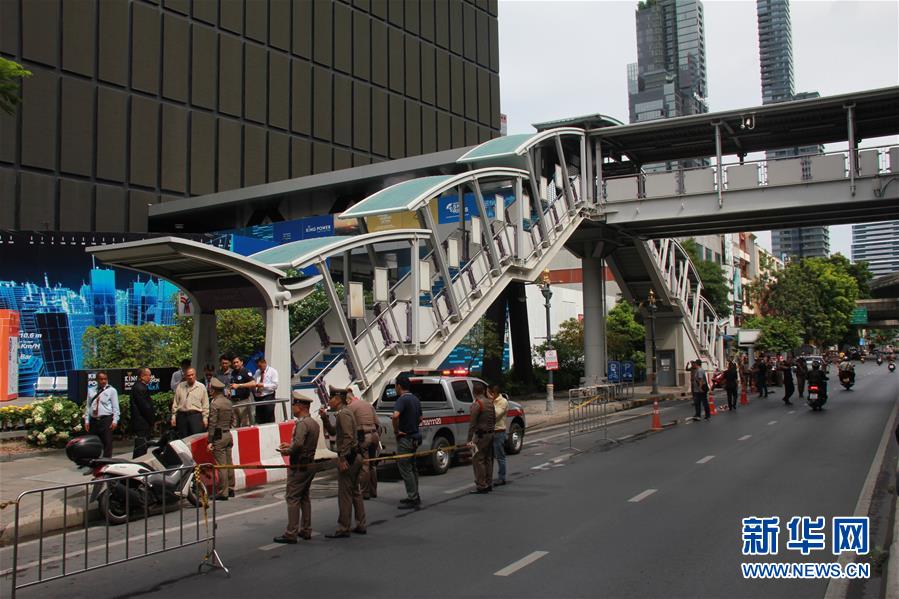 8月2日,在泰国曼谷,发生爆炸的冲暖诗站附近的道路被封锁。泰国首都曼谷2日上午发生多起小型爆炸,导致2人受伤,目前爆炸原因仍在调查中。新华社记者 杨舟 摄