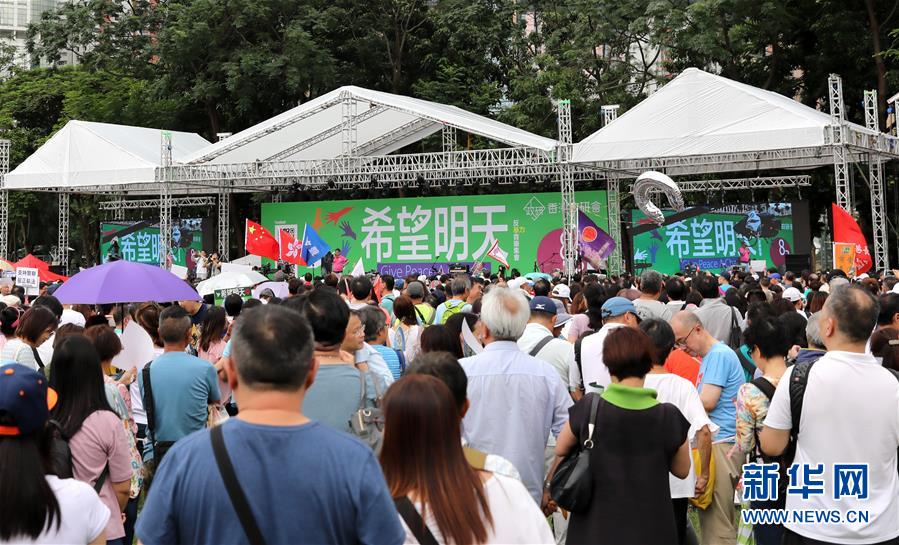 “同声同气撑警察!”8月3日下午,在香港维多利亚公园举行的“希望明天”反暴力音乐集会上,逾9万人高呼口号,表达支持警方依法维护社会秩序、期望香港社会和平稳定的心愿。 新华社记者 吴晓初 摄