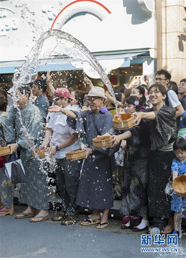 日本东京:浴衣泼水 清凉一“夏”