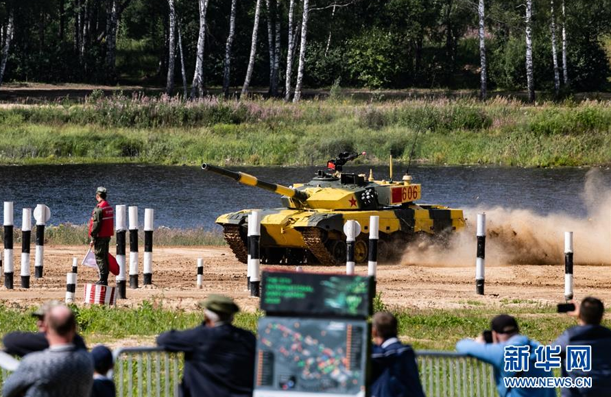 8月3日,在俄罗斯首都莫斯科远郊的“阿拉比诺”靶场,中国队96B型坦克在比赛中。 “国际军事比赛-2019”的揭幕赛——一场“坦克两项”小组赛3日在俄罗斯首都莫斯科远郊的“阿拉比诺”靶场举行。项目裁判委员会在赛后宣布,中国“坦克两项”参赛队在小组赛中夺得第一名,白俄罗斯队获得第二名。 新华社记者 白雪骐 摄