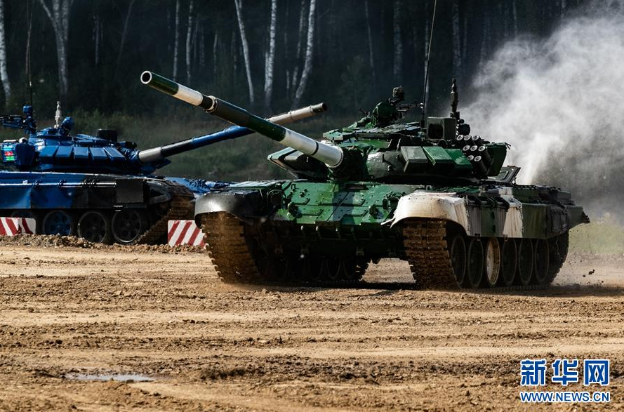 8月3日,在俄罗斯首都莫斯科远郊的“阿拉比诺”靶场,塞尔维亚队(前)和阿塞拜疆队驾驶俄方提供的T72B3坦克在比赛中角逐。 “国际军事比赛-2019”的揭幕赛——一场“坦克两项”小组赛3日在俄罗斯首都莫斯科远郊的“阿拉比诺”靶场举行。项目裁判委员会在赛后宣布,中国“坦克两项”参赛队在小组赛中夺得第一名,白俄罗斯队获得第二名。 新华社记者 白雪骐 摄