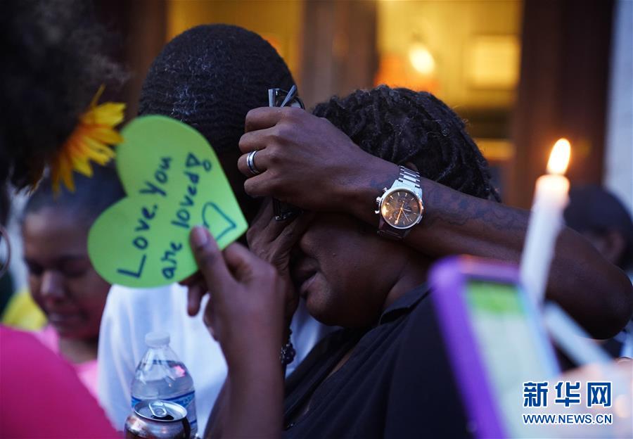8月4日,在美国俄亥俄州代顿市,人们为枪击事件遇难者举行悼念活动。 美国俄亥俄州代顿市市长娜恩·惠利4日清晨通报说,当天凌晨该市发生的枪击事件目前已造成包括一名枪手在内的10人死亡,另有26人受伤。 新华社记者 刘杰 摄