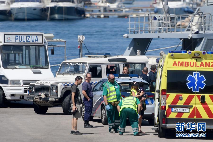 8月4日,在马耳他弗洛里亚纳,带着儿童的非法移民准备乘坐救护车。 当日,40名非法移民在马耳他弗洛里亚纳上岸。船上非法移民主要是西非人,他们自称来自喀麦隆、加纳、利比里亚、多哥和马里等国。 新华社发(乔纳森·博格 摄)