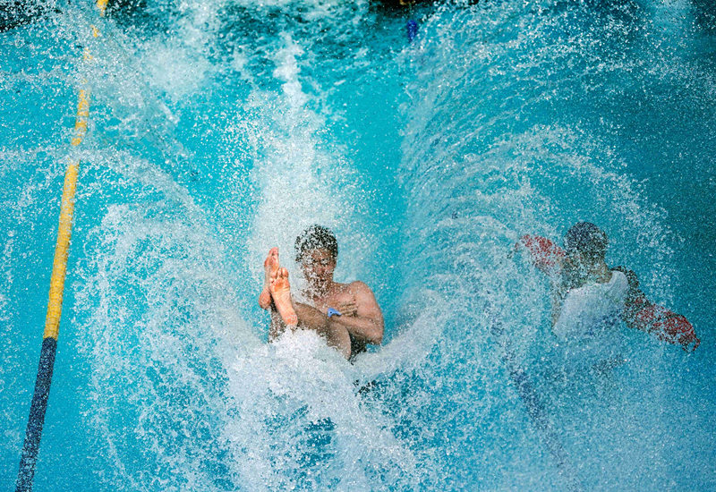 日本民众战高温 泳池海滩扎堆“下饺子”