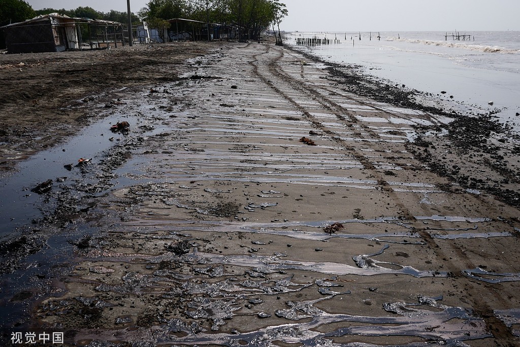 印尼海上钻井平台发生漏油事故 海滩遭污染