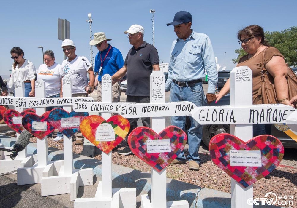 央视网消息:当地时间2019年8月5日,美国得州埃尔帕索,当地民众悼念沃尔玛枪击案遇难者。据美国得克萨斯州埃尔帕索市警方5日消息,3日发生在埃尔帕索的枪击事件中又有两名伤者不治身亡,使得遇难人数升至22人。图片来源:视觉中国