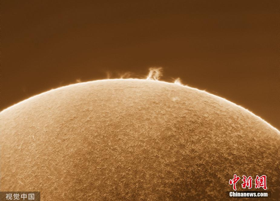 8月7日消息,天文爱好者安德鲁·麦卡锡在美国加州拍摄到的太阳表面发生气体爆炸场景。35岁的安德鲁·麦卡锡是一名业余摄影师,也是一名忠实的天文爱好者。他捕捉到了太阳表面发生瓦斯爆炸的不可思议的瞬间。图片来源:视觉中国