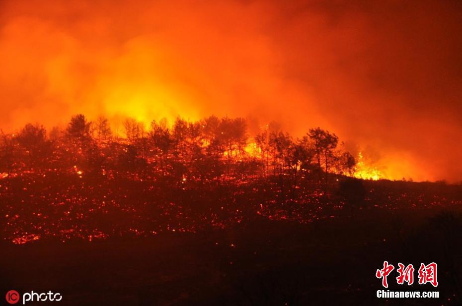 2019年8月8日,土耳其安塔利亚,Arapbeleni 地区发生森林大火,消防队员紧急赶往现场救援。 图片来源:ICphoto