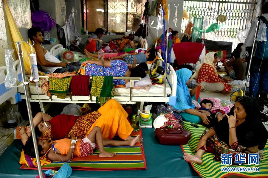 8月6日,在孟加拉国首都达卡的一家医院,由于病人大幅增多,医院床位紧张,一些患者在地上接受治疗。孟加拉国政府4日公布的数据显示,该国境内今年报告的登革热病例达2.4万多例,已有18人死于登革热。多家接收登革热患者的医院已人满为患。 新华社发(萨利姆·礼萨摄)