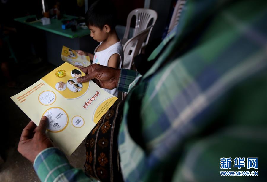 8月8日,在缅甸仰光的一个市场,人们阅读预防甲型H1N1流感宣传单。 缅甸卫生部门公布的最新数据显示,自今年6月以来至本月7日,缅甸全国已有422人确认感染甲型H1N1流感病毒,其中90人死亡。 新华社发(吴昂摄)