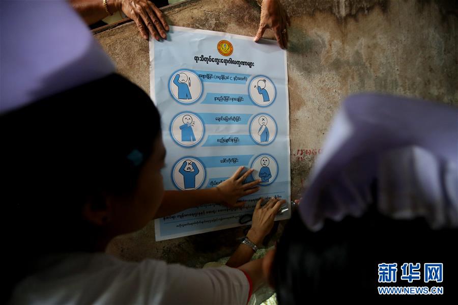 8月8日,在缅甸仰光的一个市场,护士们张贴预防甲型H1N1流感宣传单。 缅甸卫生部门公布的最新数据显示,自今年6月以来至本月7日,缅甸全国已有422人确认感染甲型H1N1流感病毒,其中90人死亡。 新华社发(吴昂摄)