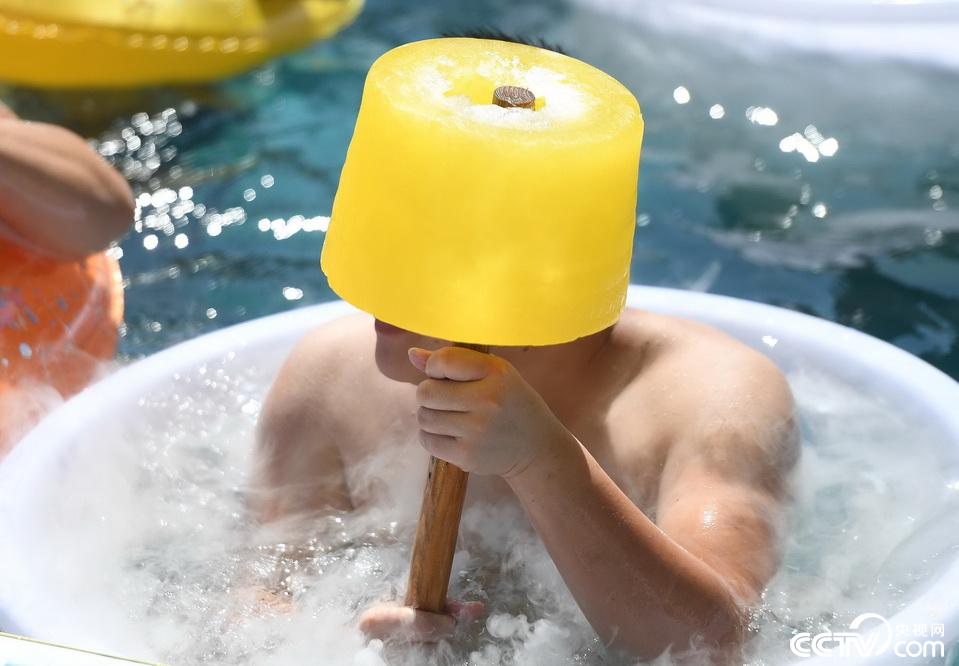 央视网消息:2019年8月13日,民众泡在水中抱着巨型冰棍享受清凉。当日,重庆开启高温模式,一水上乐园的工作人员利用各种饮料冰冻成的巨型冰棍,免费为民众发放。 视觉中国