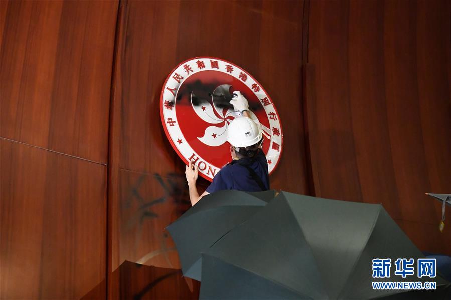 7月1日,暴徒冲击立法会大楼。 两个多月来,不断升级的违法暴力已让香港社会付出沉重代价。暴徒破坏公物、堵塞干道、阻挠通勤甚至打砸纵火,不定时、不定点地四处闹事,把香港搅得乌烟瘴气、人心惶惶。香港正面临回归以来最严峻的局面,当前最急迫和压倒一切的任务,就是止暴制乱,恢复秩序,共同守护我们的家园,阻止香港滑向沉沦的深渊。 新华社发