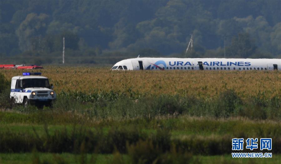 这是8月15日在俄罗斯首都莫斯科市郊拍摄的迫降后的客机。 据塔斯社15日报道,乌拉尔航空公司一架空客A321客机当天清晨起飞后不久在俄罗斯首都莫斯科郊区实施硬着陆。目前,事故已造成23人受伤。 新华社/卫星社