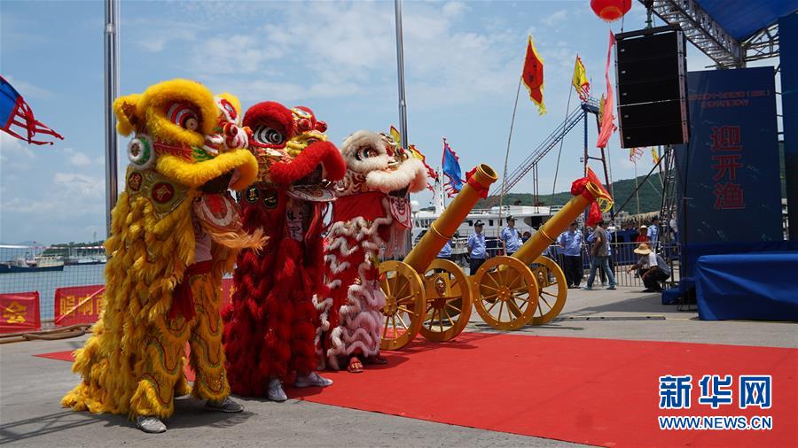 8月16日,演员在开渔节上表演舞狮。 8月15日至16日,第17届南海(阳江)开渔节于在广东阳江海陵岛举行。今年的南海休渔期也在16日正式结束,这一天,渔民们再次开始了在渔船上的辛勤劳作,向广阔的大海进发。 新华社记者 周自扬 摄