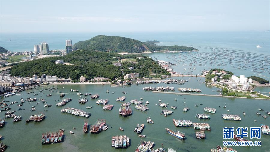 渔港里的渔船准备出海(8月16日无人机拍摄)。 8月15日至16日,第17届南海(阳江)开渔节于在广东阳江海陵岛举行。今年的南海休渔期也在16日正式结束,这一天,渔民们再次开始了在渔船上的辛勤劳作,向广阔的大海进发。 新华社记者 周自扬 摄