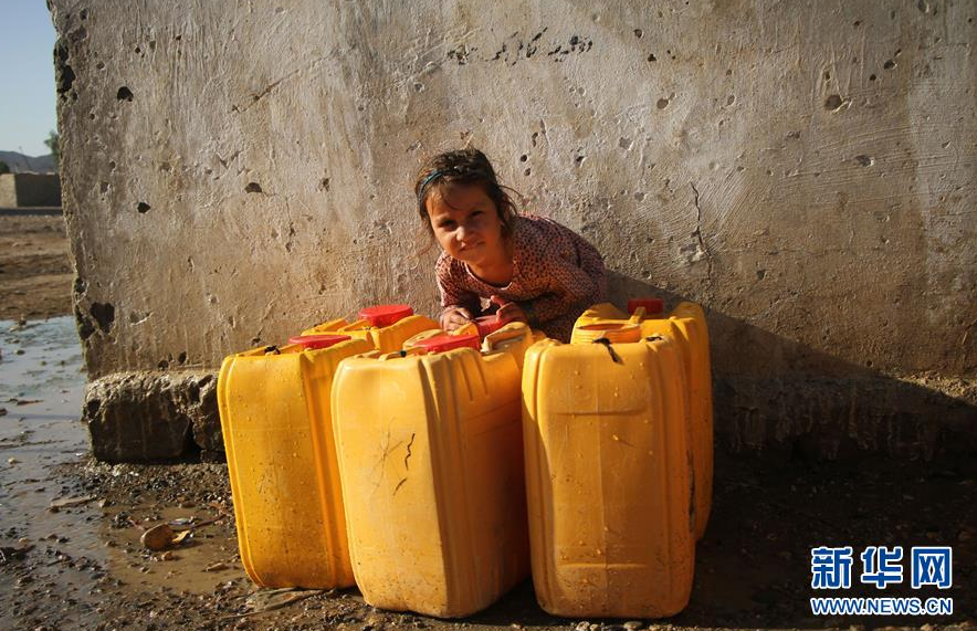 8月17日,在阿富汗东部楠格哈尔省,当地难民在一个难民营取水。 新华社发(赛义夫拉赫曼·萨菲 摄)