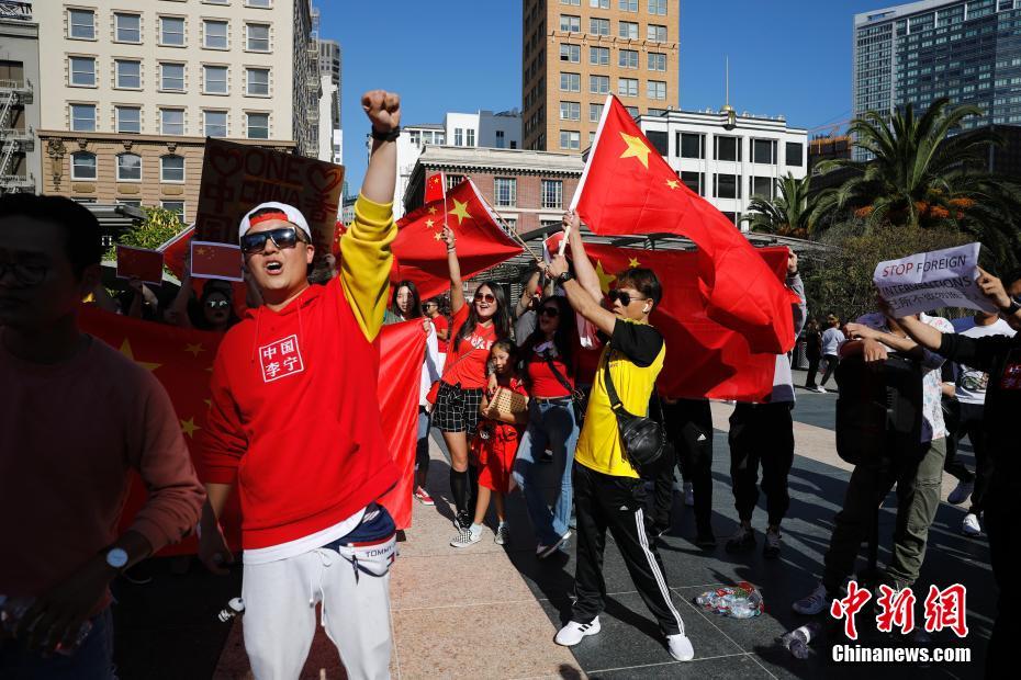 当地时间8月18日,美国北加州各界华人、中国留学生以及中国游客数百人自发在旧金山联合广场举行集会,声讨香港激进示威者暴力乱港行径,表达“一个中国”立场。 中新社记者 刘关关 摄