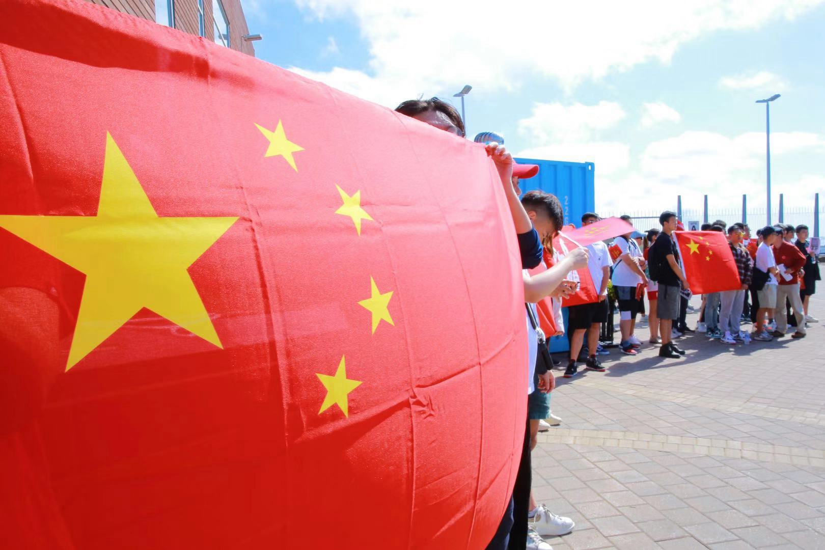 8月17日周六,加拿大新斯科舍省哈利法克斯市一些爱国留学生及华人华侨自发组织来到市中心挥舞着国旗,唱国歌,并打出标语:香港永远是中国的一部分。