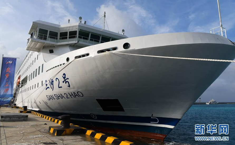 8月21日,“三沙2号”交通补给船抵达永兴岛停泊在码头。当日,三沙设市后建造的第二艘交通补给船“三沙2号”抵达三沙市永兴岛,完成首航。据了解,“三沙2号”续航能力6000海里,可搭载乘客400人。新华社记者 杨冠宇 摄