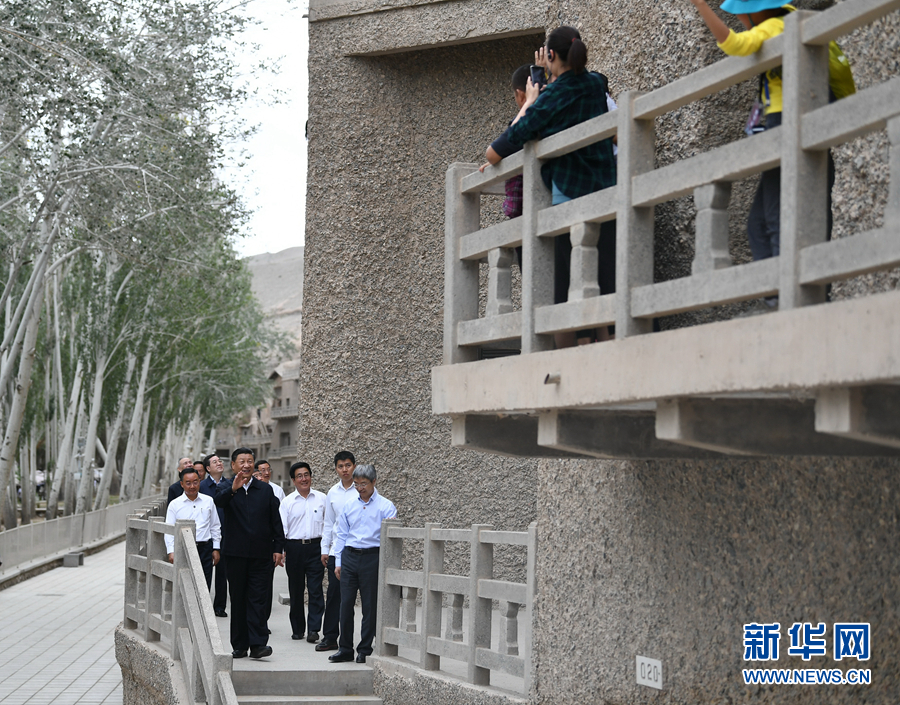 19日上午,习近平从北京乘机抵达酒泉市所辖敦煌市,即前往莫高窟考察了解莫高窟历史沿革和文物保护研究情况,并走进洞窟察看历史悠久的彩塑、壁画。