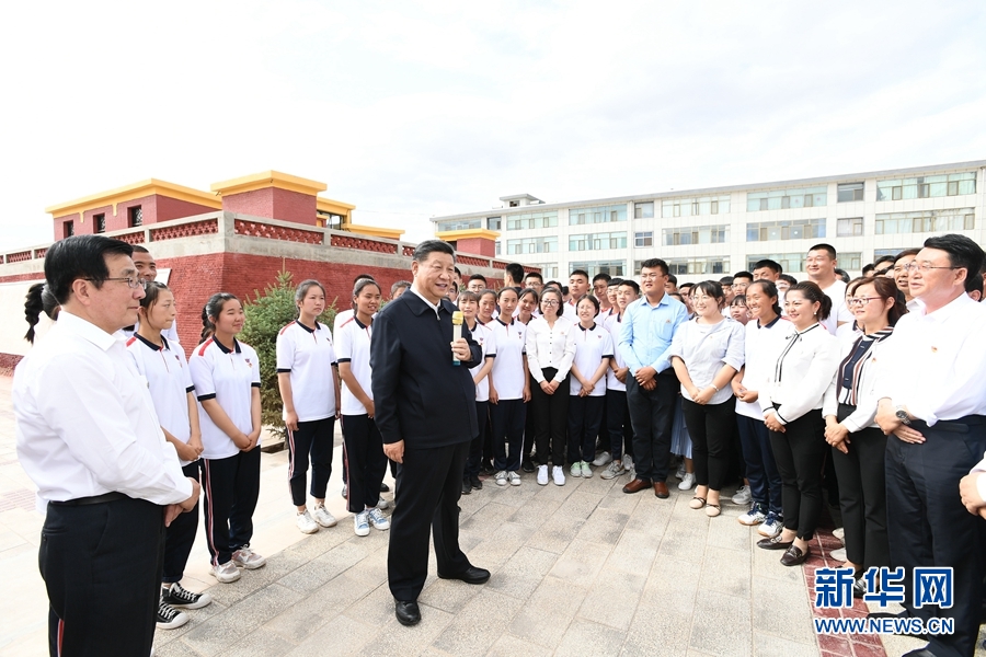 习近平在张掖市山丹培黎学校同师生亲切交流。