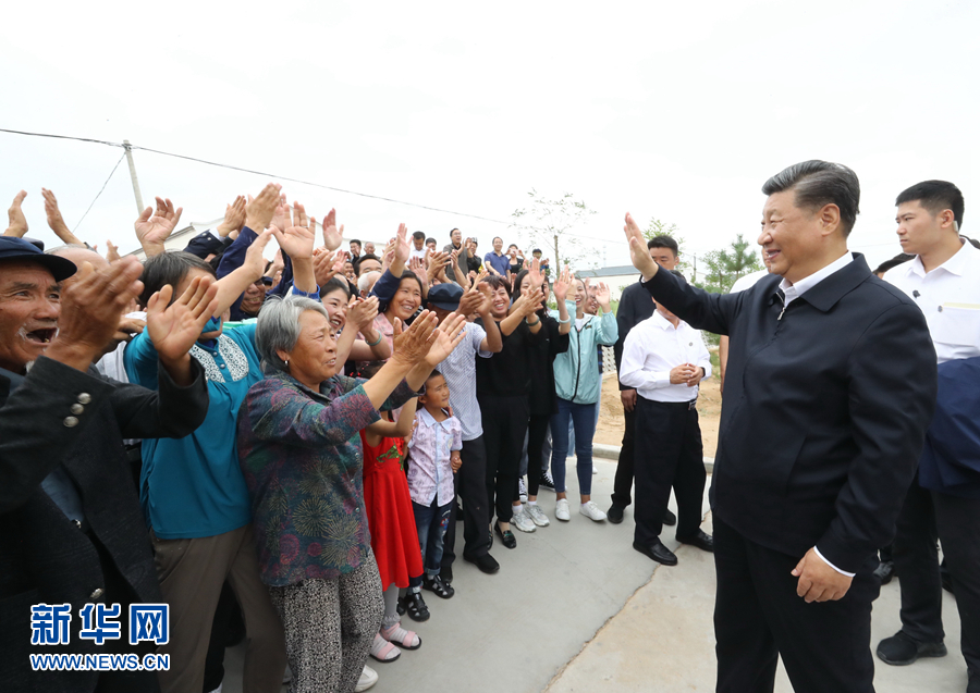 习近平在武威市古浪县黄花滩生态移民区富民新村同村民亲切交谈。