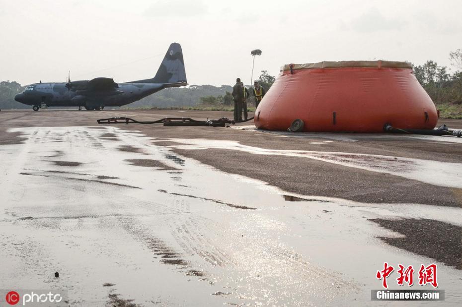 当地时间2019年8月26日,巴西国家太空研究所公布的最新卫星图像显示,本月亚马孙雨林地区共记录有25934处着火点,超过去年同期的两倍,自2011年起亚马孙雨林每年八月的着火点均低于22000处。图为巴西空军展示救灾装备。图片来源:ICphoto