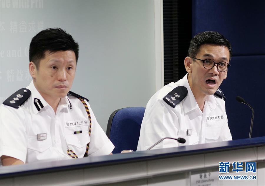 8月27日,香港特区政府警务处警察公共关系科高级警司江永祥(右)在记者会上回答记者提问。新华社记者 王申 摄