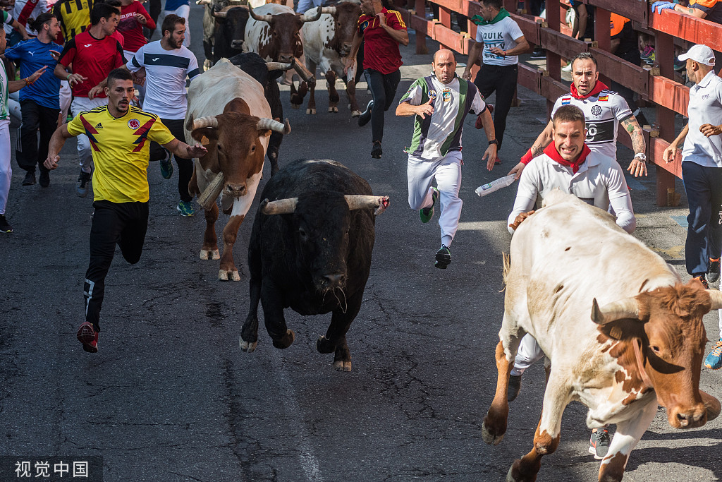 西班牙举办“奔牛”活动 “牛追人”挑战勇气胆量