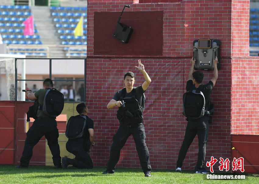 9月2日,长春市公安局在长春经开体育场举行2019年全警实战练兵活动。在安保反恐演练环节,全体参战警力快速反应、高效处置,整个演练环节紧扣,局面紧张,对抗激烈,场景震撼。在全警实战练兵环节中,共进行了24个大项41个子项的警务技能和警体项目竞逐。张瑶 摄