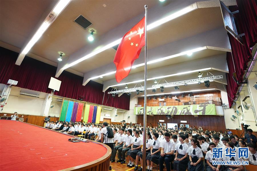 9月2日,香港教育工作者联会黄楚标中学举行开学典礼及升旗仪式,为新学年揭开序幕。 新华社记者秦晴摄