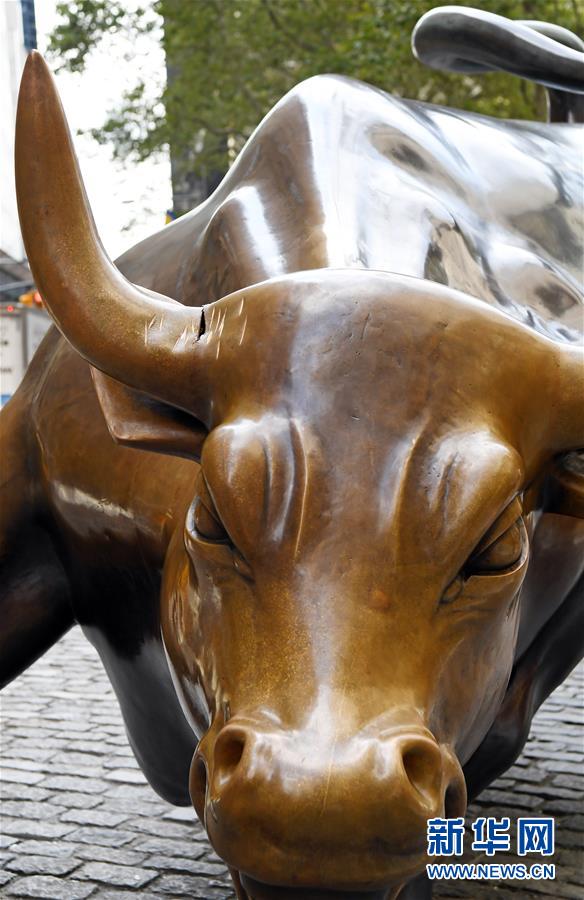 这是在美国纽约拍摄的遭人为损坏的华尔街铜牛(9月9日摄)。新华社记者李睿摄