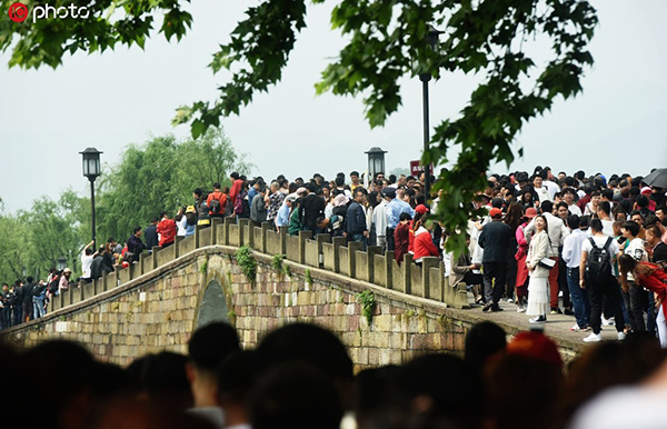 每到假期,杭州西湖风景名胜区都呈现一派游人如织的盛景。来源:东方IC